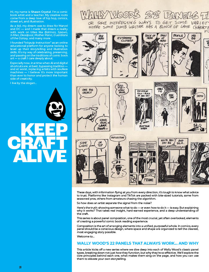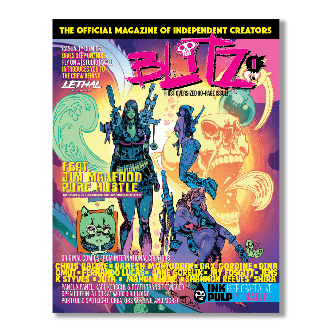 BLITZ is your front-row pass to the indie comics uprising. No gatekeepers, no rules — just raw, creator-driven stories, deep dives, interviews, and spotlights that celebrate the fearless voices shaking up the scene today. Each issue hits hard with Inkpulp’s no-nonsense take on the craft of comics, spilling the secrets, tricks, and chaos behind making your own work.